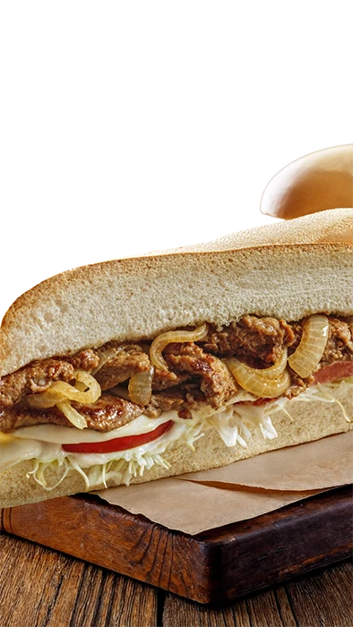 Bistec Marinado Con Cebollas Salteadas Y Queso Suizo